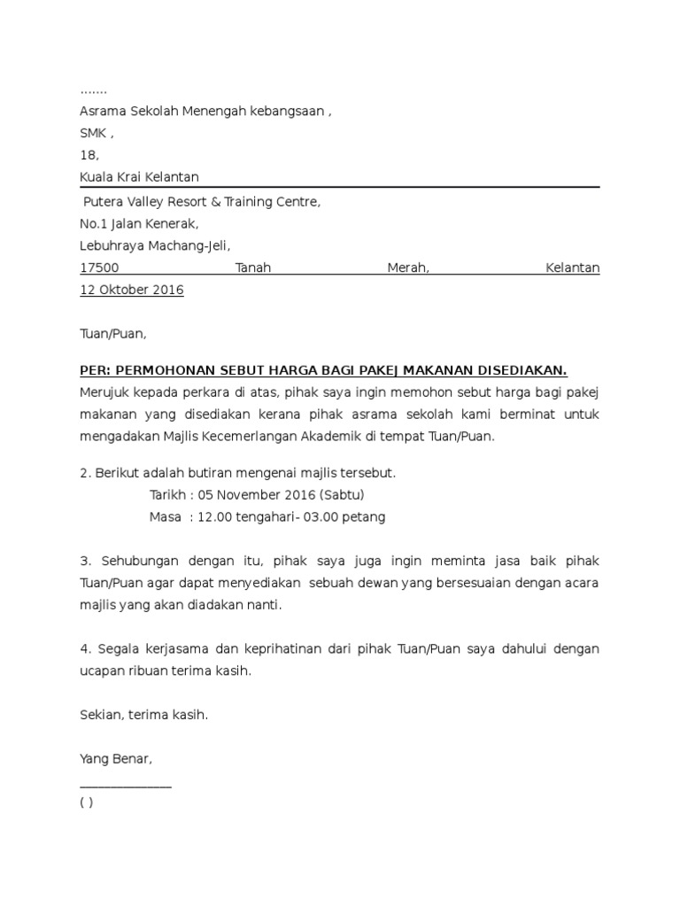Quotation contoh surat memohon sebut harga nusagates. Contoh surat minta sebut harga putera valley resort. Untuk makluman tuanpuan tender buka sebut harga kantin sekolah sk haji wan jaafar akan dibuka mulai 11 julai 2016.